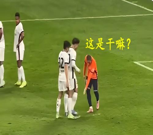 这位前国脚在干嘛呢?原来他不断用鞋在点球点刨坑(上图),意图让罚球点凹凸不平,给对手的点球主罚徒增难度。小心思很聪明啊:你不是想要罚点球吗,我让你罚哈。有意思的是,就在李帅偷偷摸摸刨坑的时候,队友吾米提江也默契地在旁边看着,两人心照不宣。此举诞生了中超新名词:“李帅挖坑”。
