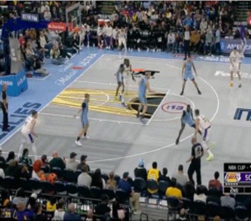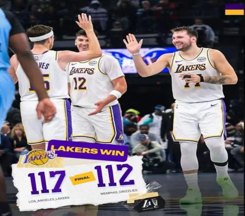 比赛结束,湖人以117-112险胜灰熊