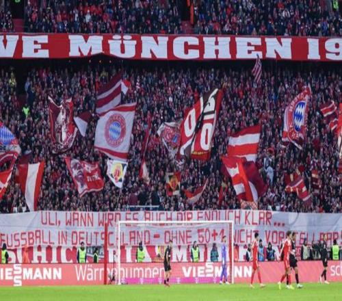 对此,拜仁球迷表示反对,在比赛中他们拉起了横幅,上面写着: “乌利,你什么时候才能明白……没有50+1的德国足球是不可想象的!”