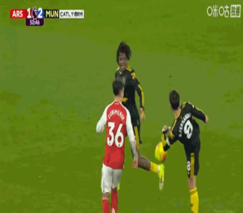 比赛第50分钟,多古和B费在前场连续配合后禁区外起脚爆射,皮球击中横梁后弹入球门,曼联取得了2-1领先。