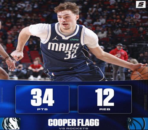 独行侠不敌火箭后已经吞下四连败。库珀-弗拉格又打出一场高光表现,全场比赛39分钟,25中13,三分4中1,罚球10中7,拿到34分12篮板5助攻1盖帽2失误,命中率52%,真实命中率57.8%,正负值+2。