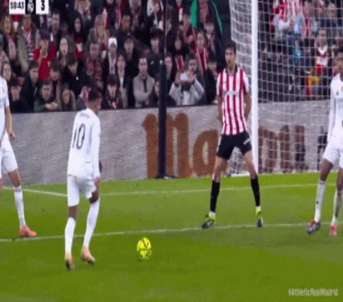 第13分钟,皇马后场失误,毕尔巴鄂竞技断球反击,N威廉姆斯断球往前推进后兜传门前,古鲁泽塔点球点处抢点凌空扫射踢飞了。第17分钟,皇马左路快攻,姆巴佩送出精妙直塞,维尼修斯插上突入禁区获得小角度半单刀良机,只是他没有射门,想着横传做饼,被回防球员将球挡出底线。第25分钟,毕尔巴鄂竞技4分钟内两次左侧制造杀机,古鲁泽塔和贝伦格尔都获得超近距离良机,只不过他们的大力推射都被库尔图瓦奋勇扑出。